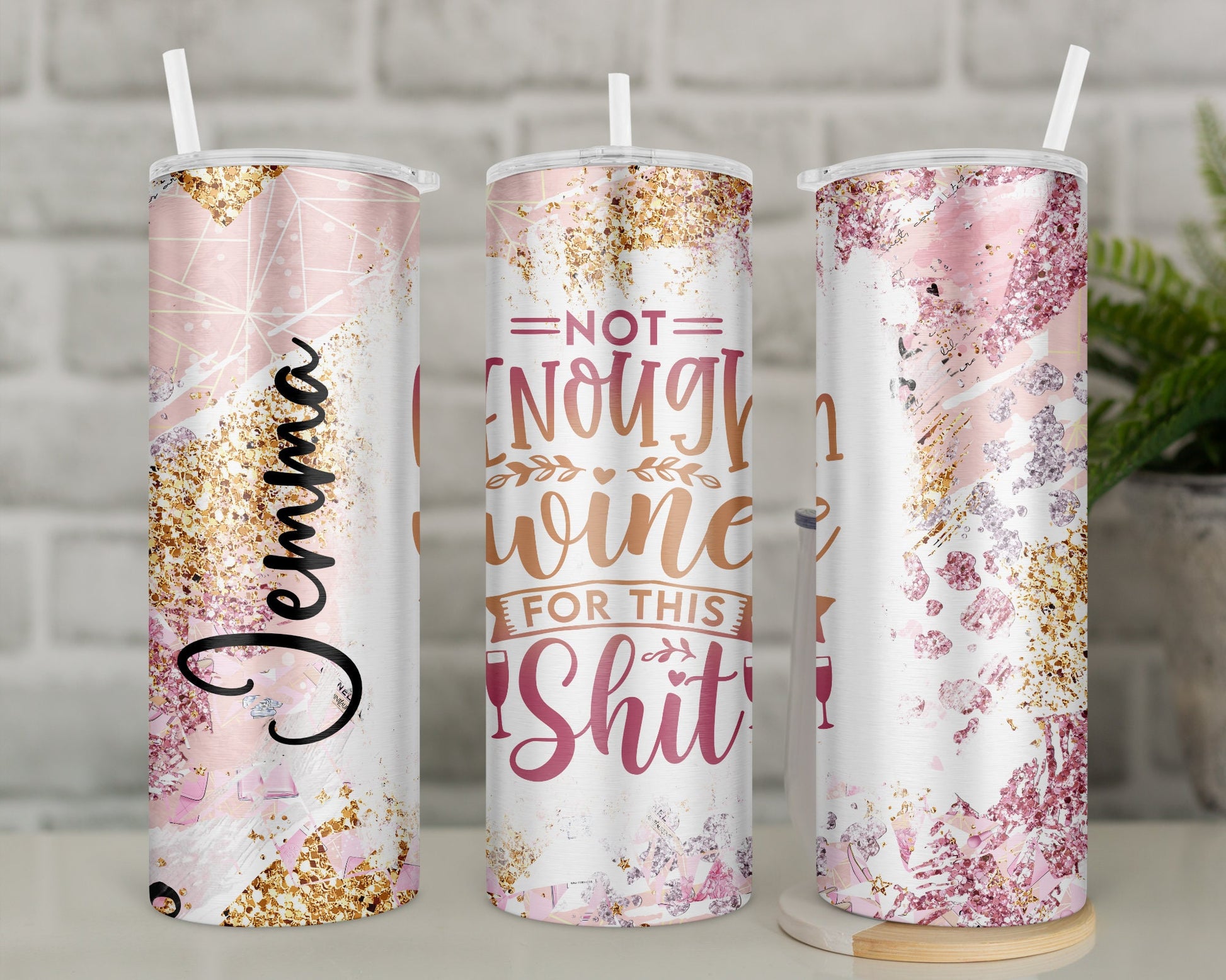 Lovely, insulated tumblers printed with a fab, pink and gold glitter effect design and the wording 'not enough wine for this shit'. They can also be personalised with a name. They are perfect as travel mugs.
