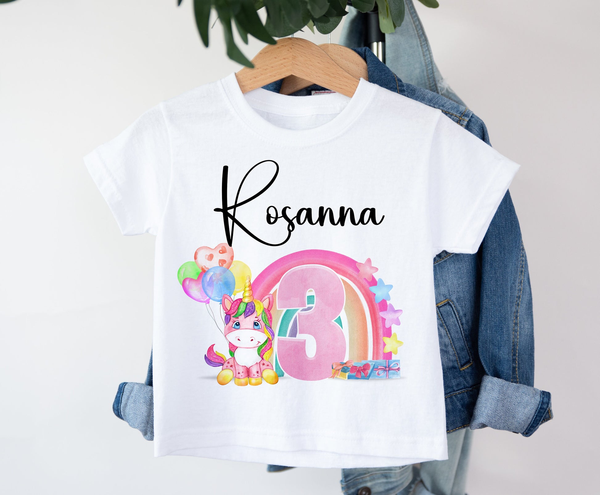 Girl's Unicorn Birthday Personalised T Shirt with Age and Name