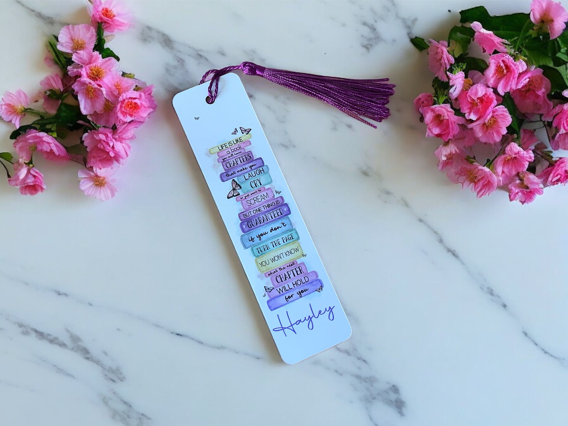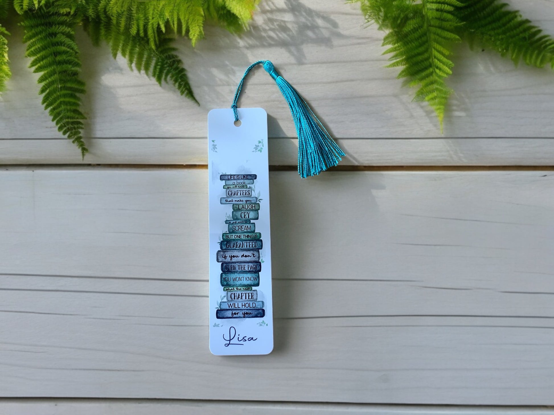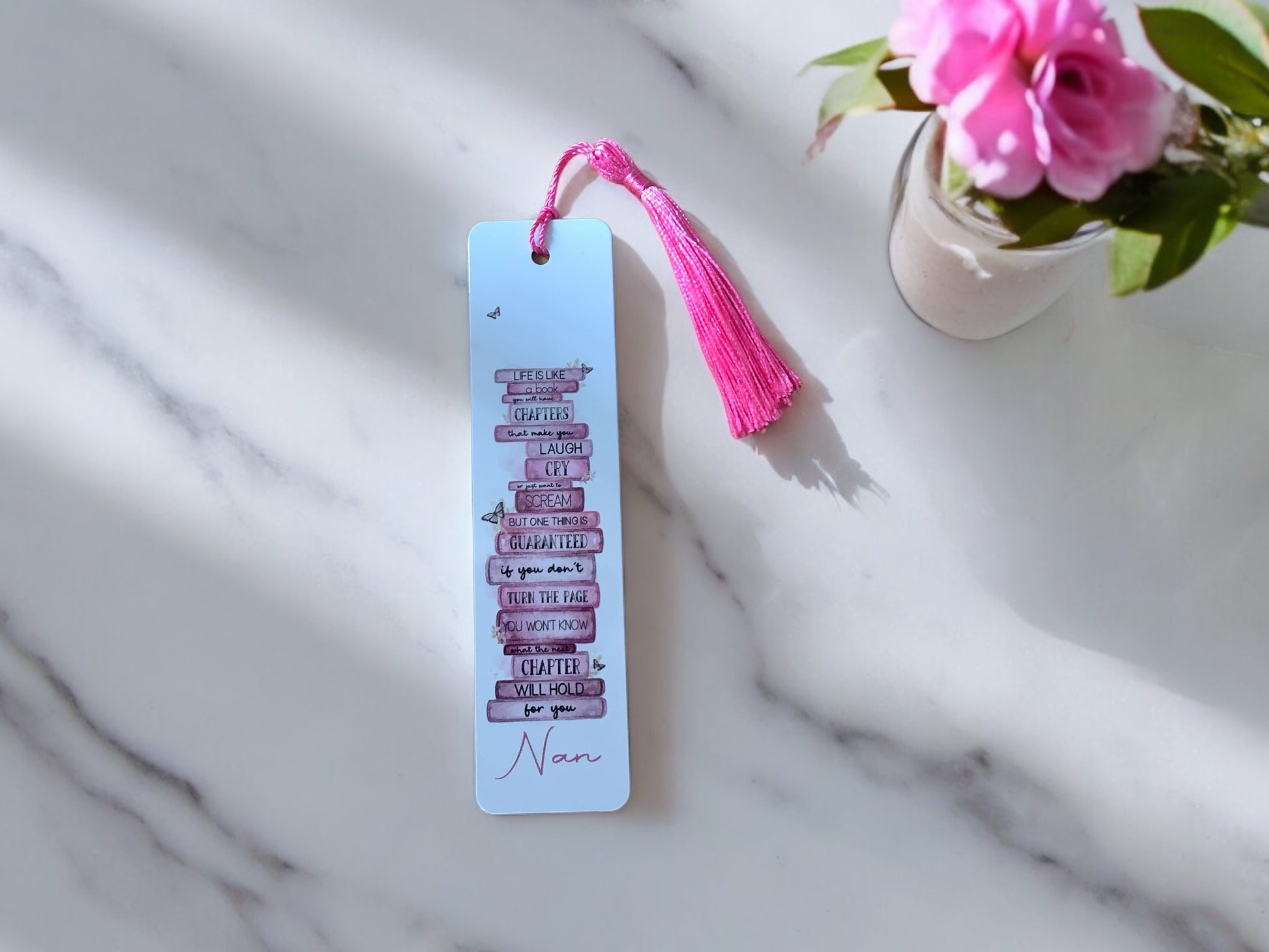 They can be personalised with a name and on the reverse, your own wording or ‘just one more chapter’.