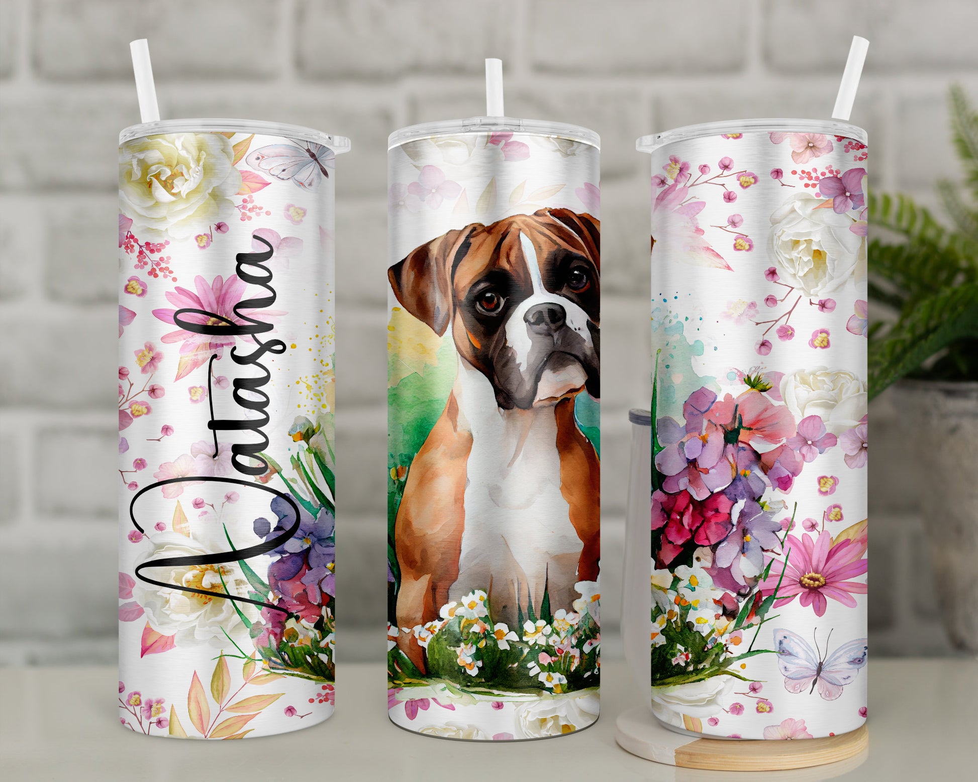 Personalised Boxer Travel Mug l Insulated Boxer Dog Tumbler with Straw