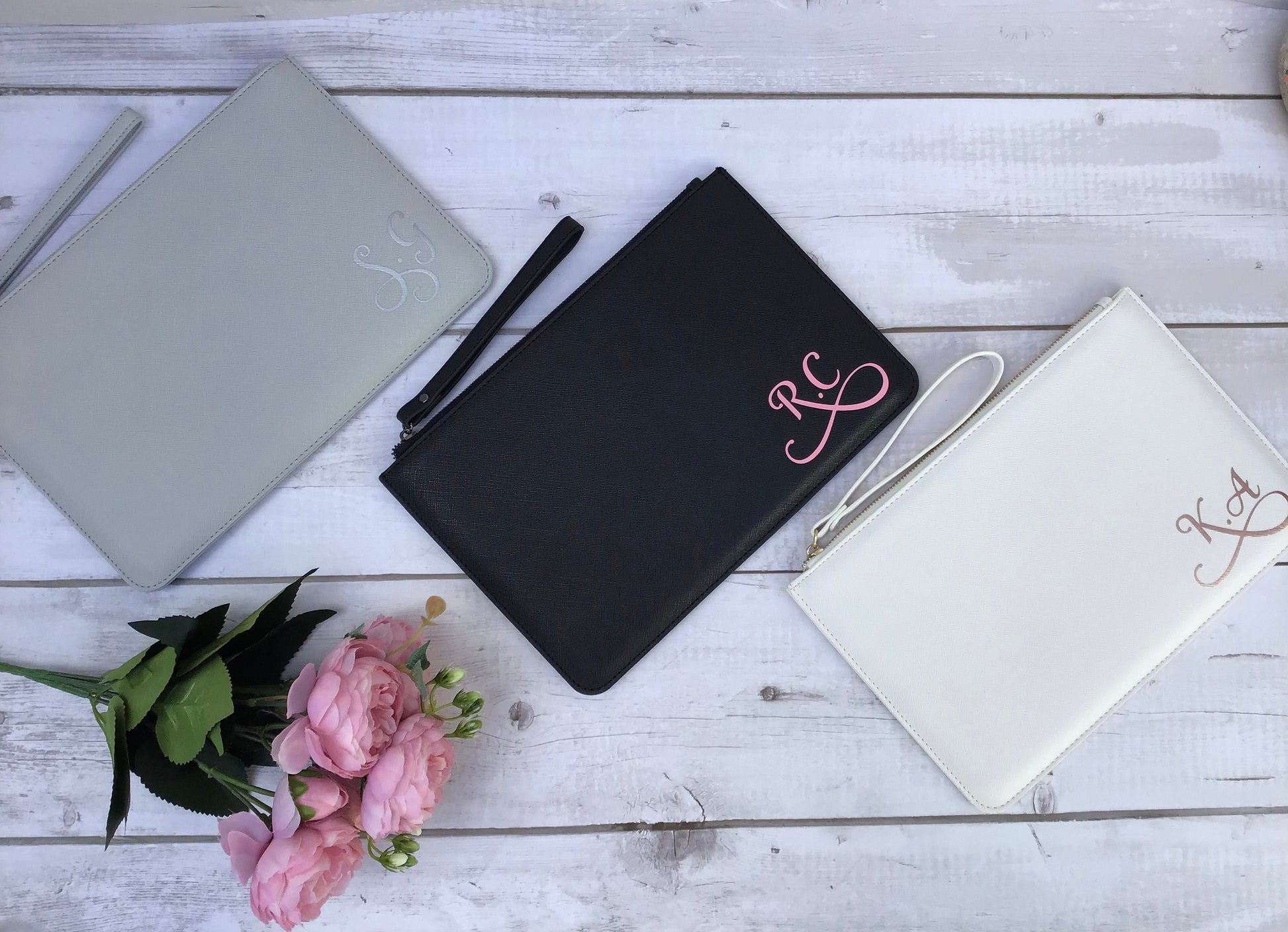 Personalised Bridesmaid Clutch Bag with Wrist Strap and Initials