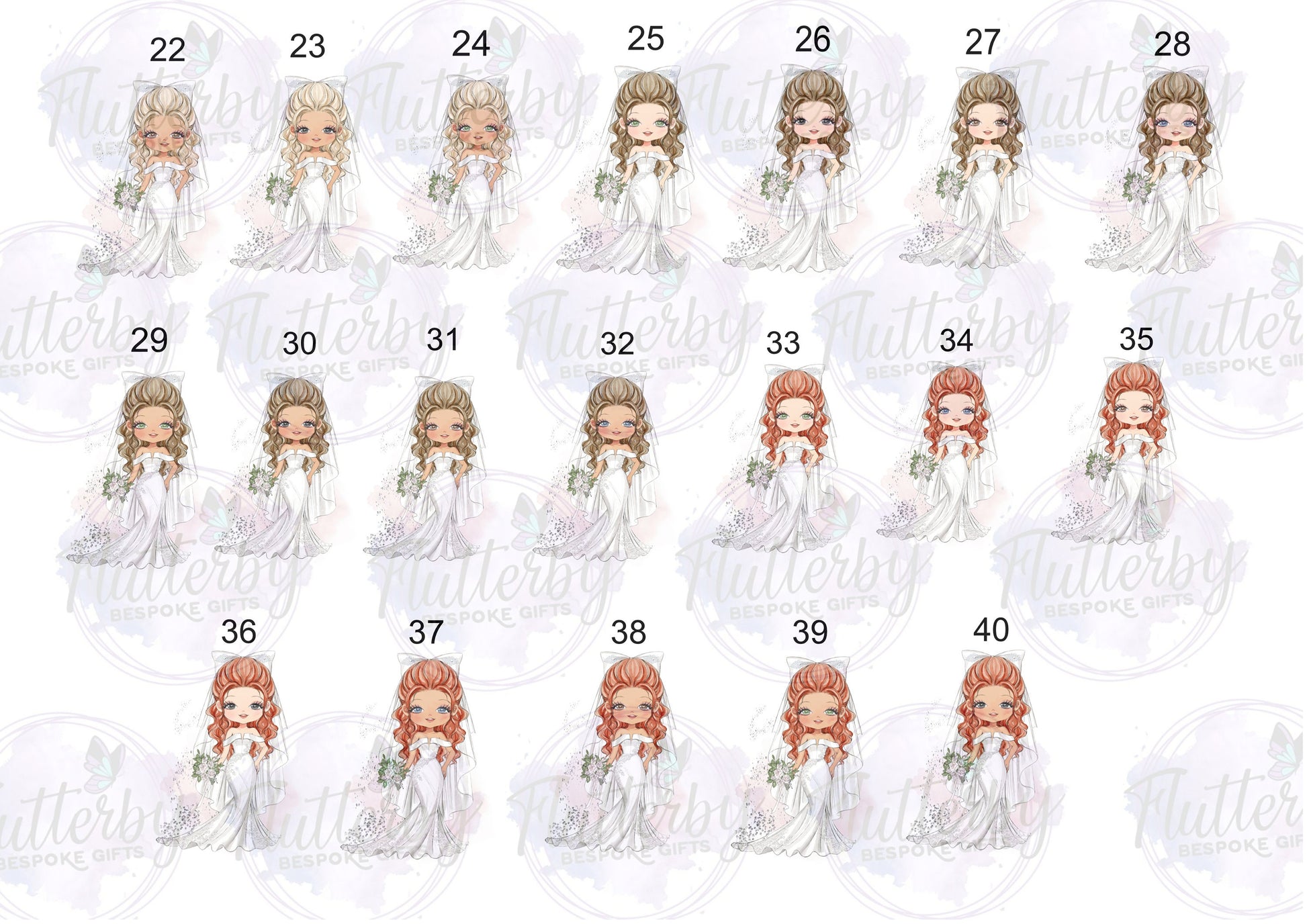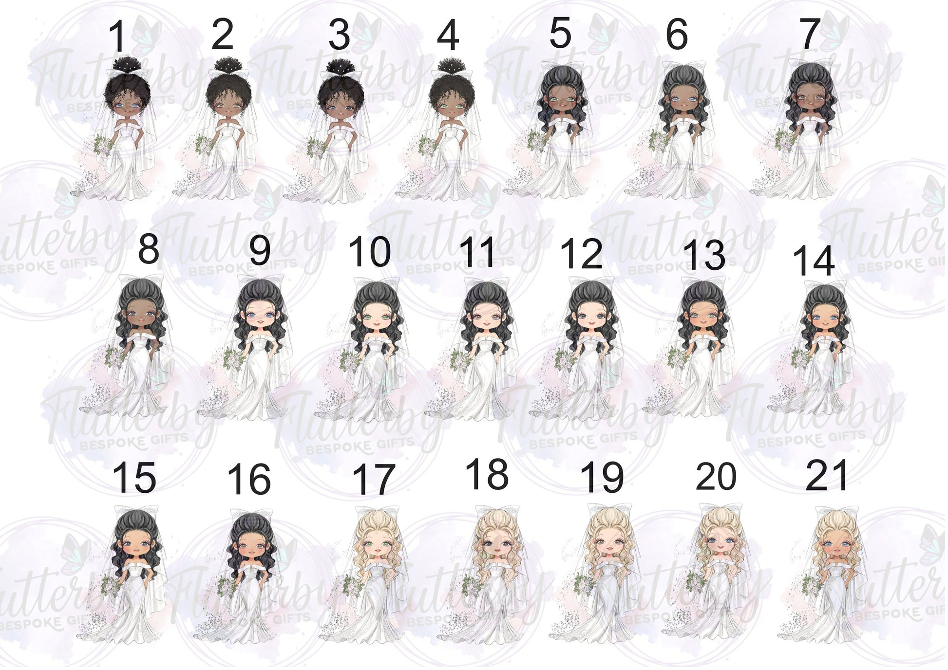 Gorgeous, chic, white hip flasks, printed with a custom bride image (choice of skin tone, hair colour and eye colour) and personalised with a name and any wording. These are the perfect gift for the bride to be! Perfect for the hen night, wedding morning and they make a great keepsake to take on nights out 🍾