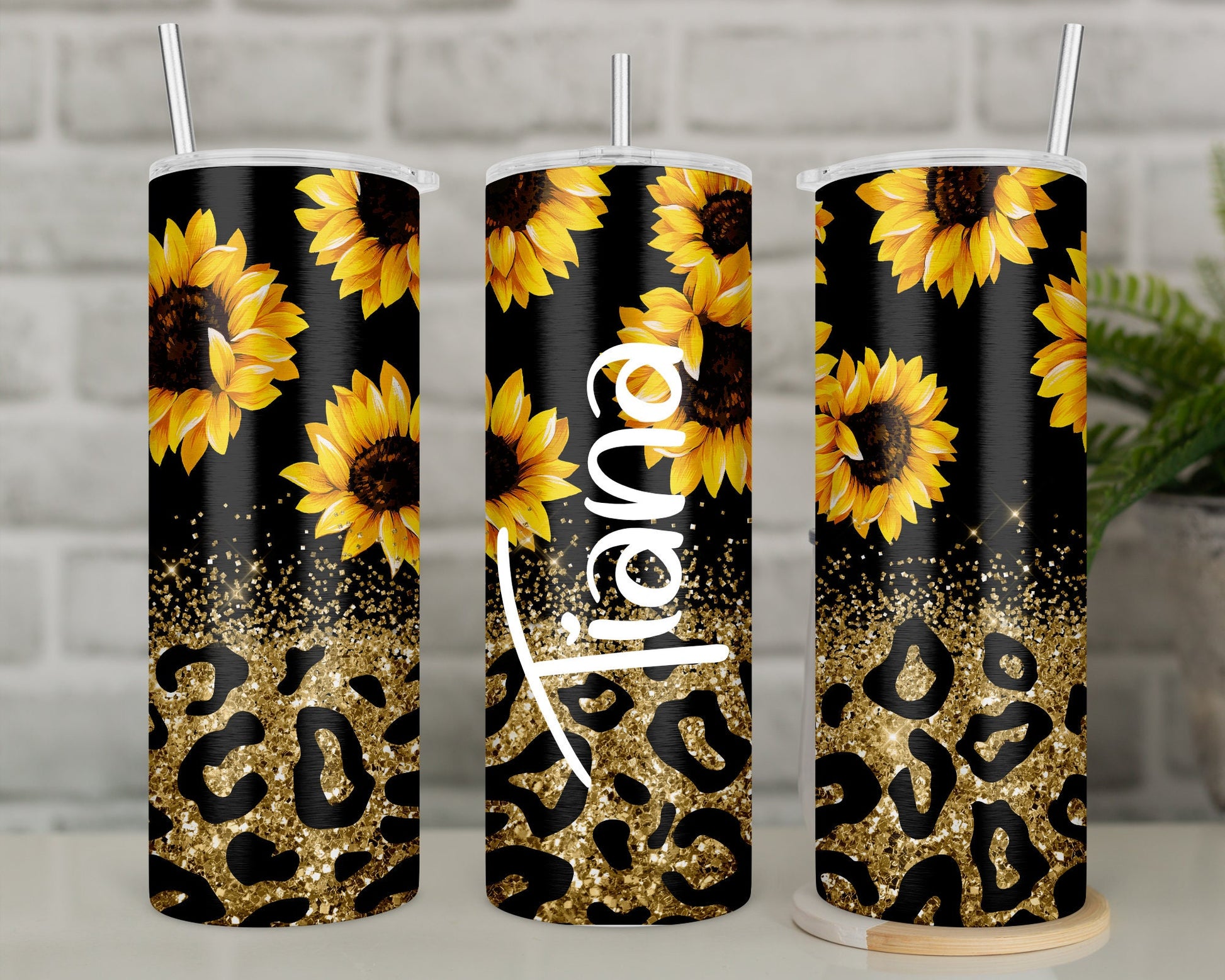 This leopard print and sunflower combination travel mug is the perfect gift for yourself, friends or family!