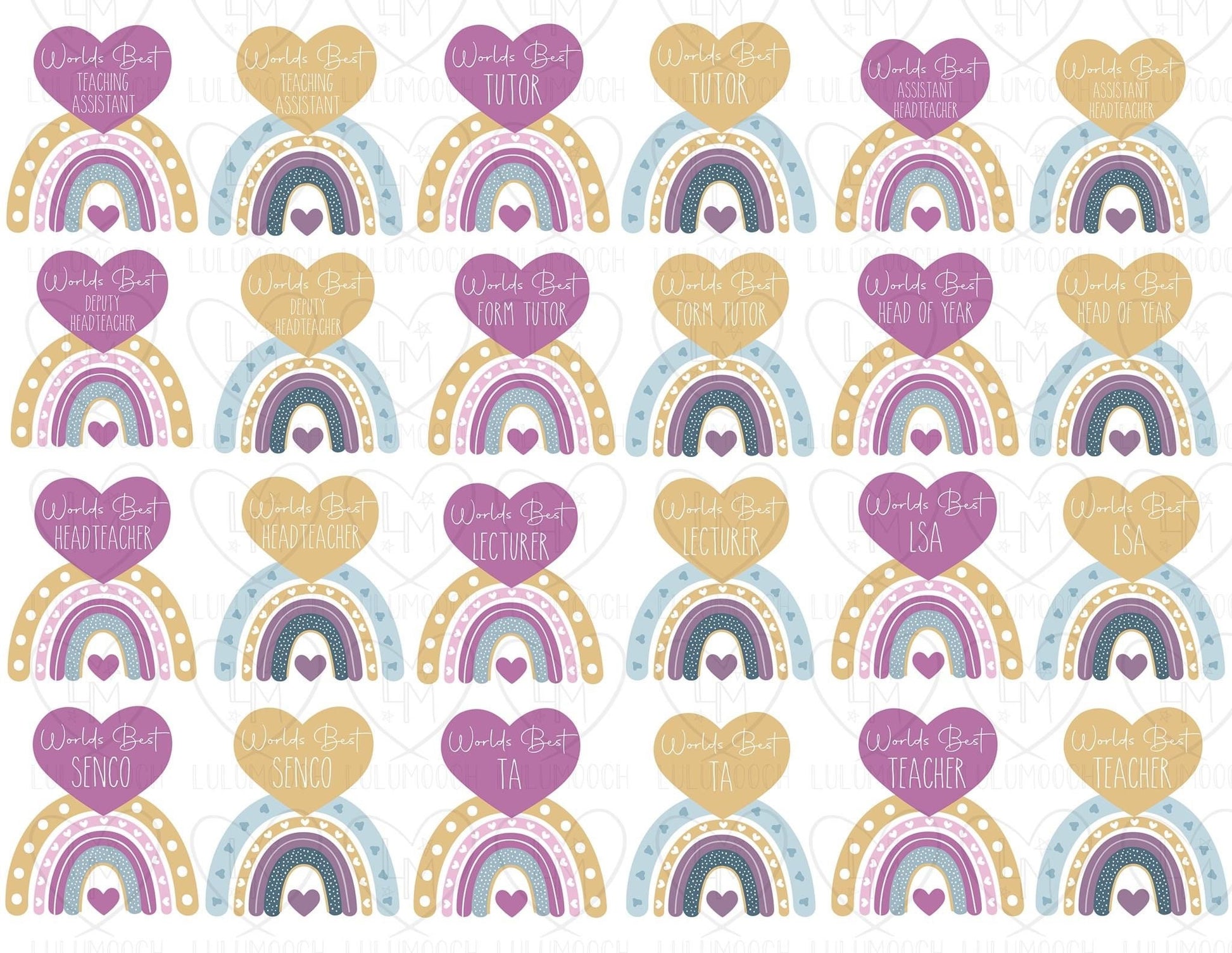 Available in pink/white, blue/white, purple/white, lilac/white ombré or plain white with a choice of 2 different coloured rainbow designs.