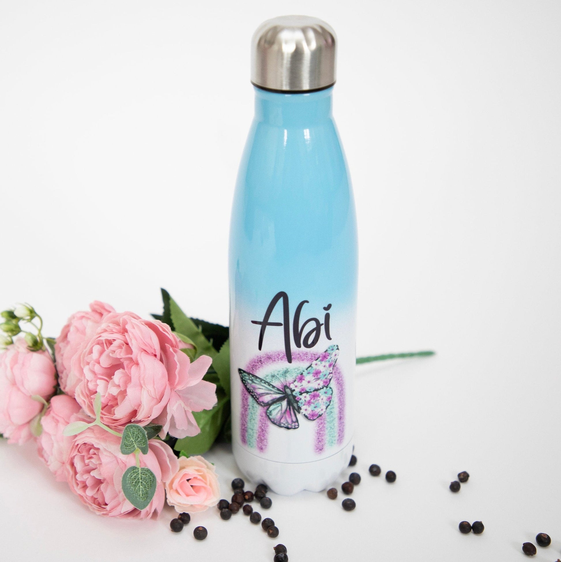 These insulated bottles are great for school, printed with a beautiful butterfly and rainbow image and personalised with a name.